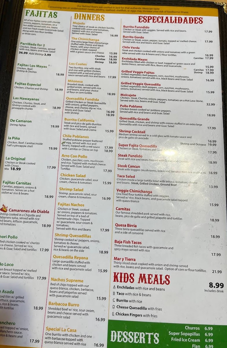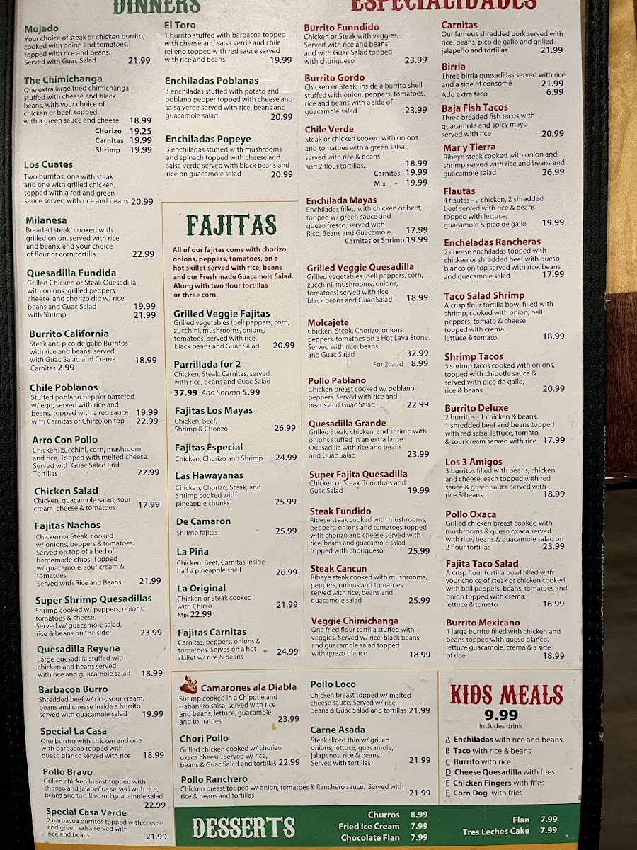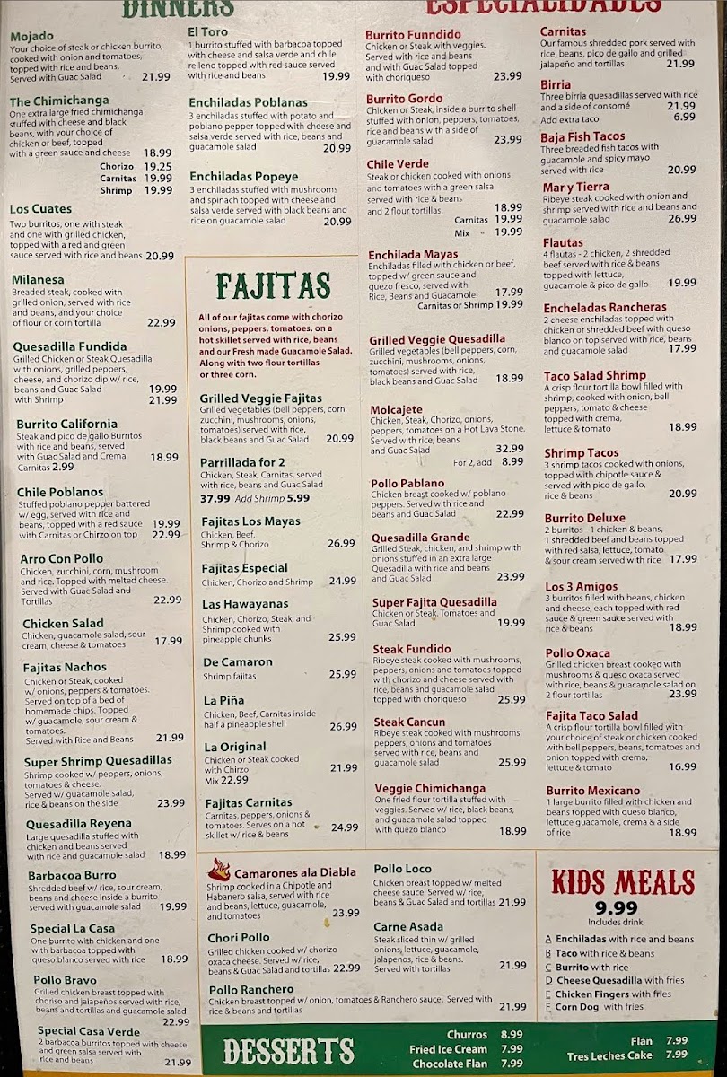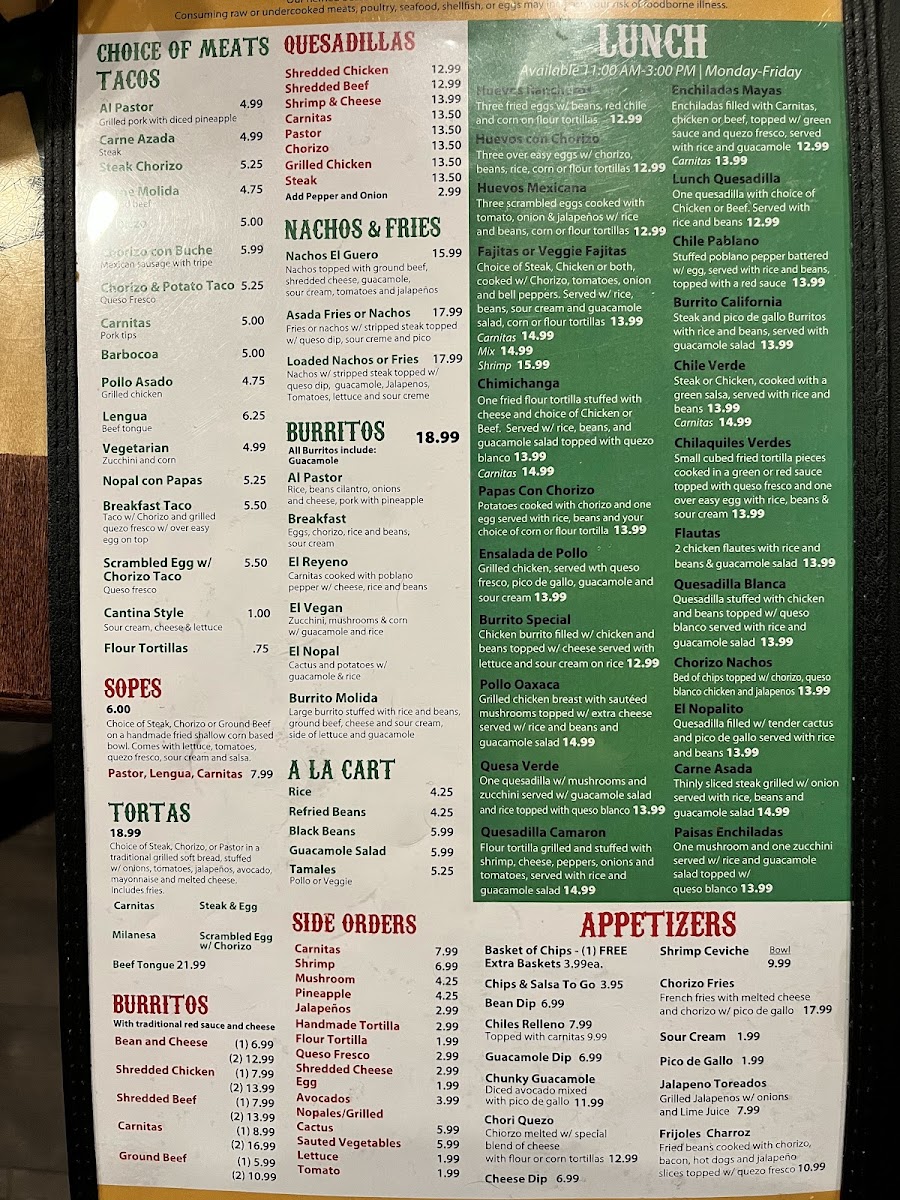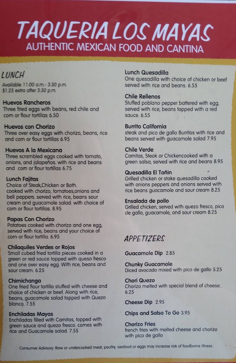 Taqueria Los Mayas Menu